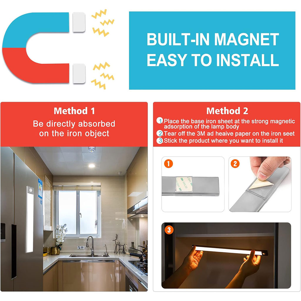 بفضل المغناطيس القوي في الجانبين، يمكنك تثبيت المصباح على أي سطح معدني. كما يمكنك استعمال الشريط المعدني المرفق لتثبيته على أي سطح غير معدني.